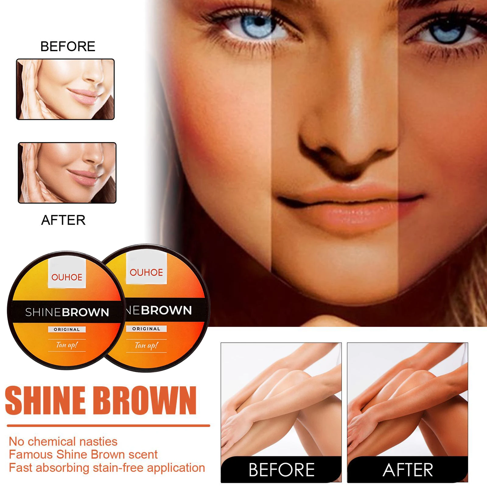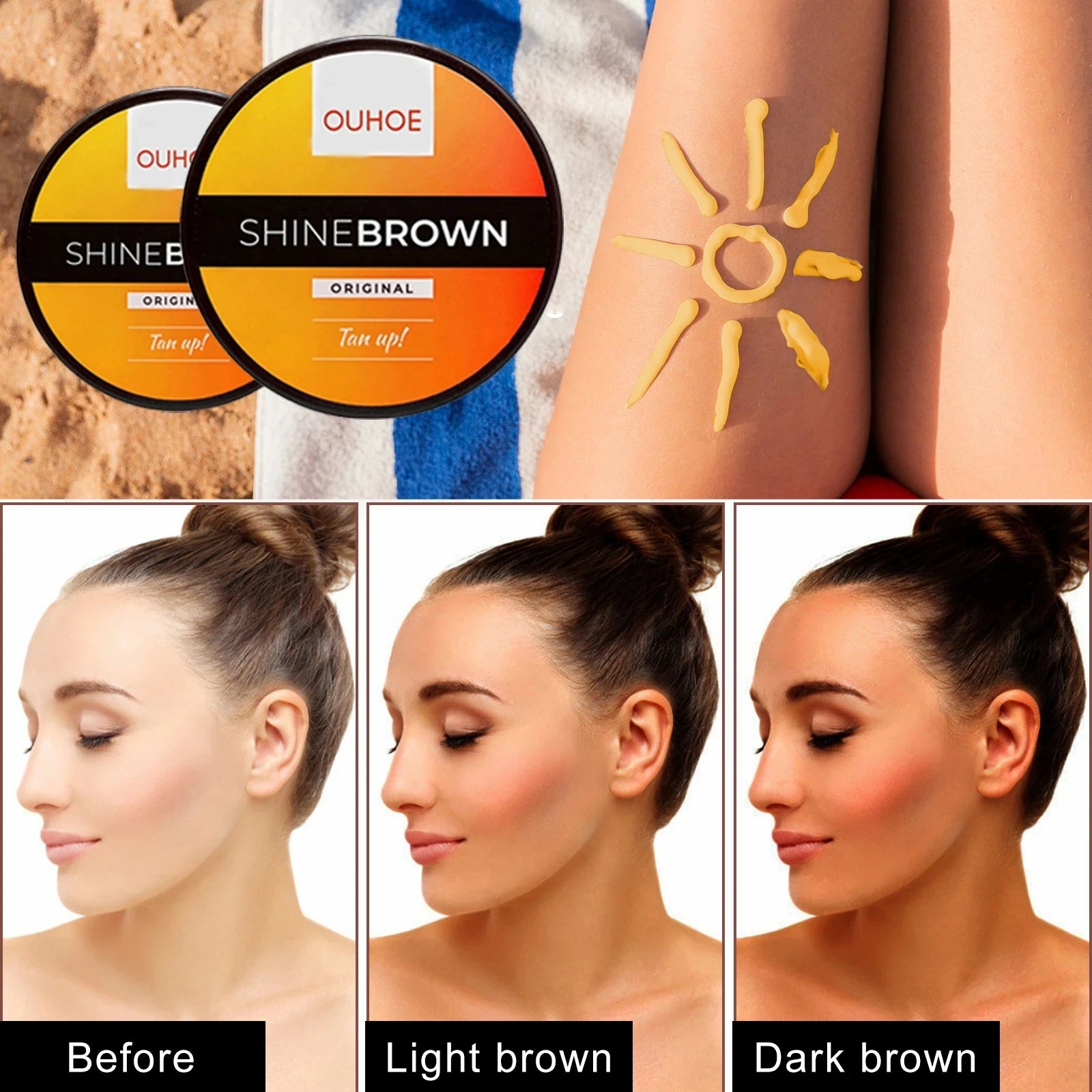 2Pcs Brown Natural Tanning Cream Tanning Accelerator Outdoor Self Tanning Gel Natural Intense and Powerful Tanning Skin 50g