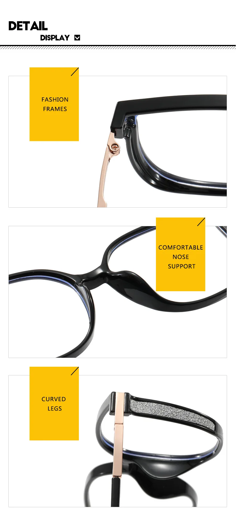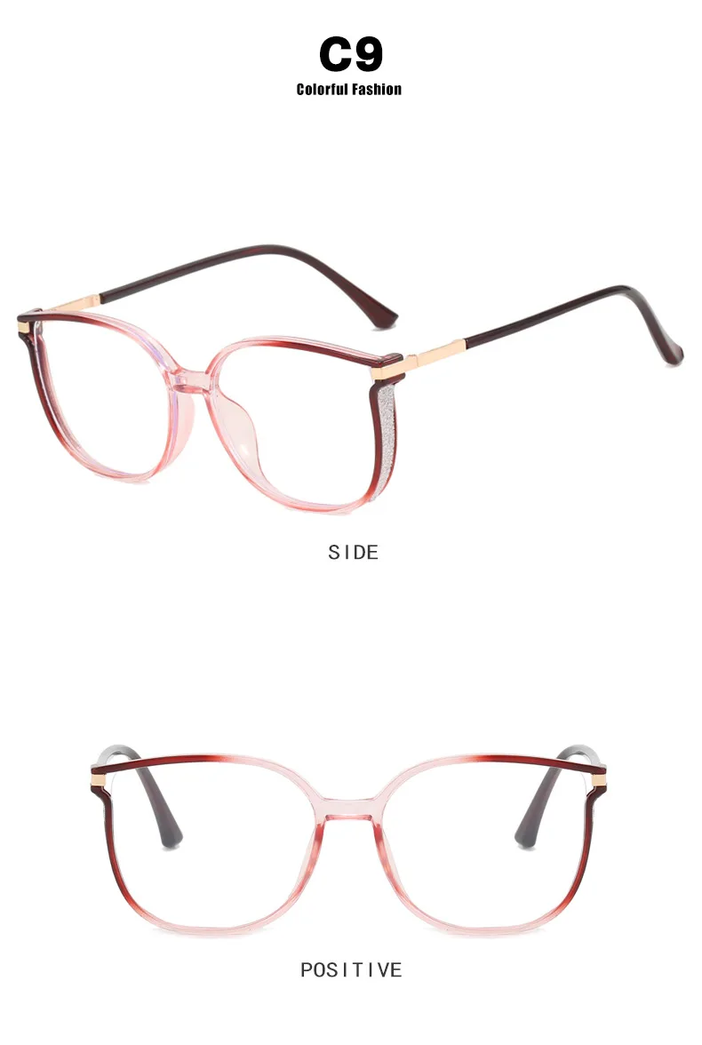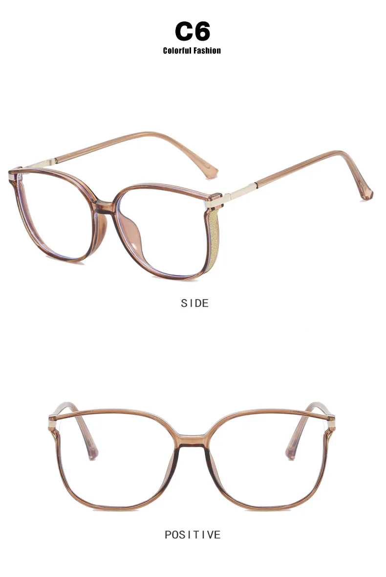 Women Fashion Shiny Square Eyeglass Frame 2023 Trend Large Frame Anti Blue Light Glasses Computer Goggle Whosale